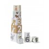 Kartonové kostky lze skládat do sebe nebo z nich postavit věž. Čísla na jednotlivých kostkách doplňují obrázky zvířat ze skandinávských lesů. Kostky patří do...